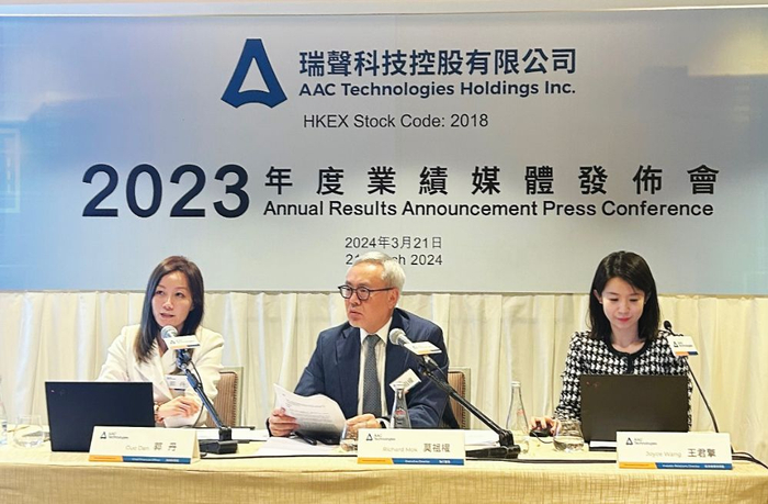 3月21日,瑞声科技(2018.HK)在香港举行2023年度业绩媒体发布会。