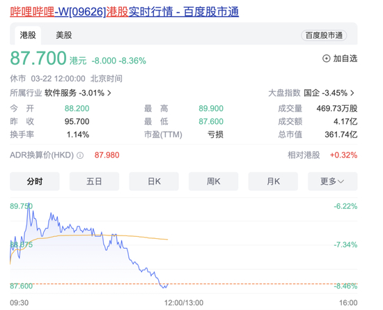 截至记者发稿,港股哔哩哔哩-W跌超8%。