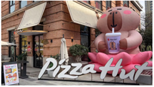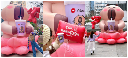 除了系列周边,此次必胜客还联名打造了大型线下打卡装置,卡皮巴拉气模、趣味哈哈镜,配合表达时下年轻人心声的印字气球,引来不少路人驻足和拍照合影。“太萌了!”社交平台上,一条帖子刚发出,就引来不少网友热议。