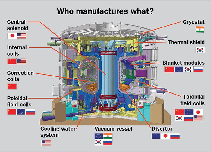 ITER项目最初只有美苏欧日4个成员,后来变为美俄欧日中韩印7个,协作国也扩展到35个。