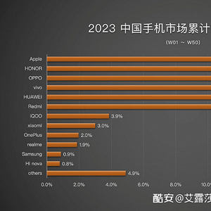 其中,BCI发布的2023年前50周国内手机市场销量占比数据排行榜单中,罗列的品牌已经比较详尽,数量多达12个,但这其中仍没能找到魅族的身影。
