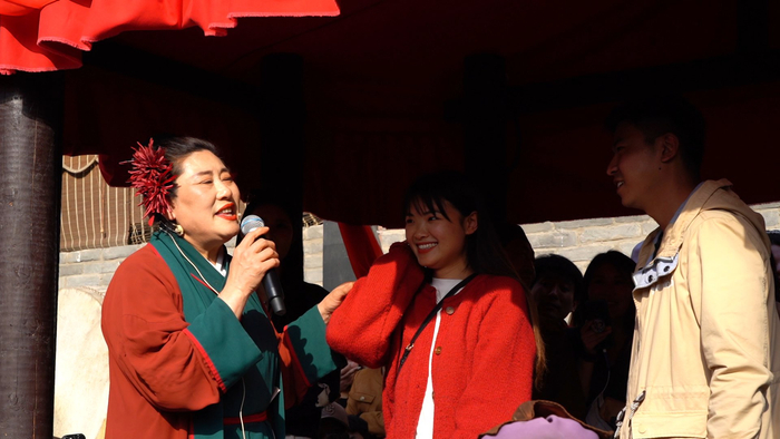 赵梅称,最初设计“王婆说媒”这个节目,就是想让游客体验一下古代的市井文化。表演一段时间后,赵梅和身边人琢磨怎么让节目吸引更多人观看,并进行了改进,慢慢形成了现在的表演方式。