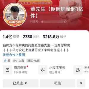 珠宝带货头部主播董先生在某短视频平台上粉丝数量超3200万,多位明星艺人曾与其合作直播。