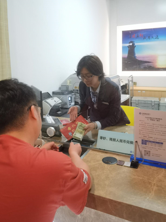 陆续从银行工作人员手里领到一沓零钱。