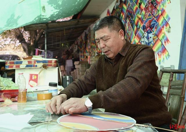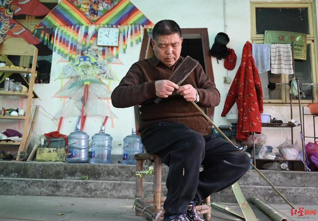 这意味着,不同地区的风,适合不同的风筝。“山东潍坊的风筝制作的竹条很厚,拿来我们四川放,就飞不起来。同样,四川的风筝拿到山东潍坊放,容易被吹断。”老高摆弄着手中的风筝说,“现在的风筝没有了风筝味儿,因为风筝最大的乐趣就是制作,以往一只成品风筝,起码要经历1个月,上百次试飞才精准定位每个骨架的位置和斗线位置,有了‘标准’后才能批量制作。但现在市场形势变了,越来越多的机器制成的风筝,少了人情味。”