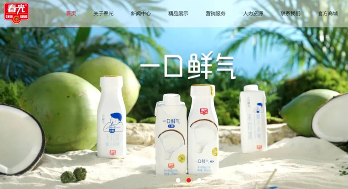 其中,春光食品被称为“海南第一手信”品牌,此前以椰子糖、椰子饼干等零食食品为主要产品,近年又加大椰汁产品宣传力度。点开公司官网,首页滚动的三个展示位中有两个留给了椰汁产品,重视程度可见一斑。