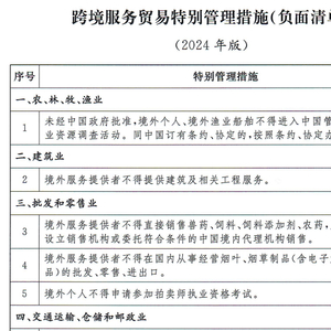 首张全国版跨境服务贸易负面清单公布!涉金融、建筑等11个门类