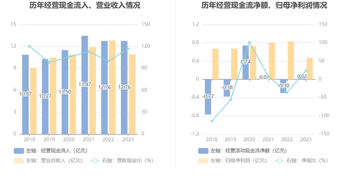 2023年,公司营业收入现金比为116.78%,净现比为23.91%。