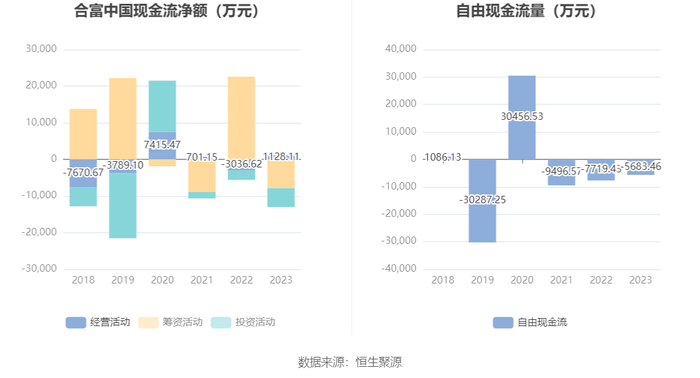进一步统计发现,2023年公司自由现金流为-5683.46万元,上年同期为-7719.43万元。
