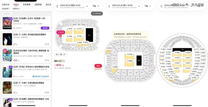 摩天轮则主打选座业务。硬糖君也是万万想不到,正儿八经卖票的一级票务平台大麦、猫眼都不能支持的选座,你却可以在二级票务平台上选座。一场演唱会流出了多少黄牛票,都在什么方位,可是一目了然。