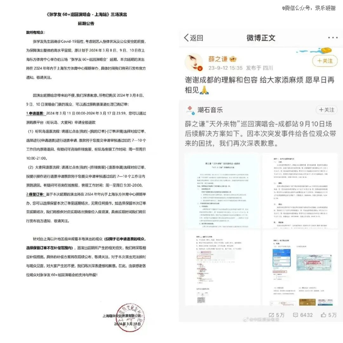 硬糖君原本以为群众会心疼卖力演出的花甲老头,但结果舆论一边倒地指责张学友不赔歌迷的机酒,最终华乐非凡迫于舆论压力,不得不发布公告,宣布将赔付购票用户的机酒。没想到由薛之谦开创的赔机酒先例,现在变成了一个取消演唱会的惯例。