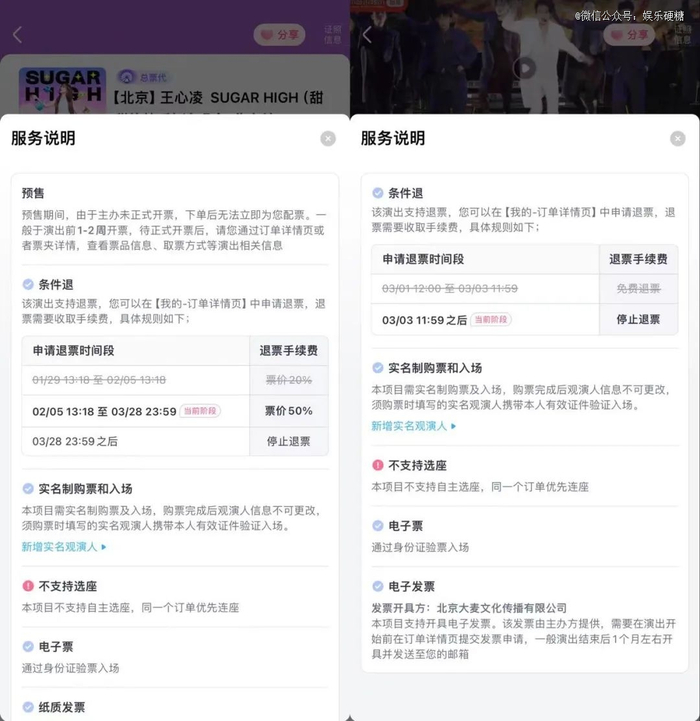 一场演唱会需要提前一两个月开预售买票,一两个月内用户难免行程发生变化。万一不能去演唱会了,却不能转票,退票则需要高昂的手续费。比如王心凌北京演唱会提前两个月退都要收取50%退票费,有的演唱会还只支持开票三天内免费退票,之后便不能退了。