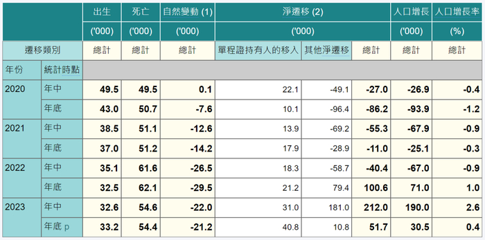 生育率的不断下滑,导致香港的自然增长人口也变为负值。