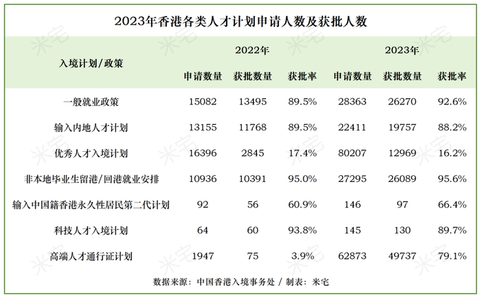 比如优才计划,1.29万获批的人才中,内地人才就有1.27万,占比高达98.5%。