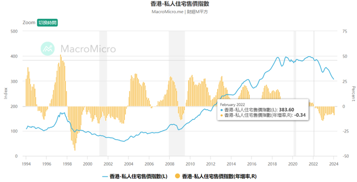 香港的房价,也从2022年2月之后连续下跌,到今年1月份已经整整跌去20%。