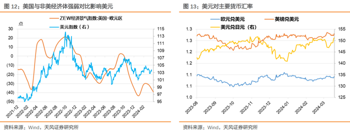 观察欧元区经济表现,2024年1月M1同比-8.62%,相比前月下行0.19个百分点。考虑到欧元区M1同比一般领先GDP约三个季度,欧元区后续进入衰退概率较高,则即使美国经济和美债利率相对回落,美元指数仍然可能偏强。