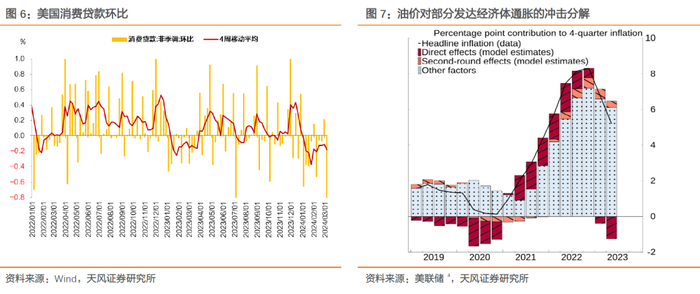 2023年12月 美联储挂网文章《油价对海外发达经济体通胀的第二轮影响》指出,油价攀升对通胀存在直接传导和第二轮效应,2022年油价上涨的第二轮效应预计在2024年第一季度之前提高部分发达经济体通胀,然后由于油价阶段性回落,第二轮效应在2024年剩余时间内会抑制通胀水平。2023年7月后油价上涨第二轮效应预计在2025年二季度显现。