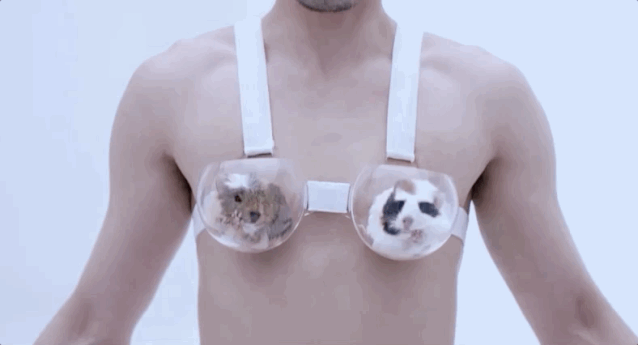 然后戴着这些“假胸部”,做各种运动。