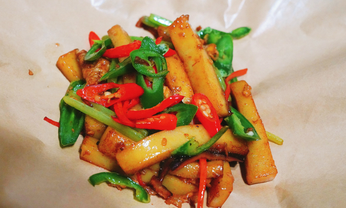 丽水山城的辣,早已融入了日常,最朴素的食物也离不开辣的风味。辣椒跟黄粿一起爆炒,辣味与黄粿独特的香气混合,色香味俱全,吃上一口,弹性十足,香辣浓郁,填满味蕾。