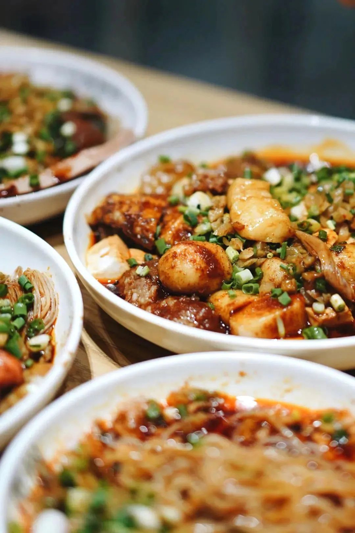 衢州的麻辣烫算是自成一派,它的食材和调味都很特别,肉圆、滑肉、猪肺、笋衣……别处不常有的食材却是衢州麻辣烫的“常客”。衢州麻辣烫以干拌为主,葱花、香菜、酸菜铺满表面,再淋上一圈秘制蘸料和一大勺香喷喷的辣椒油,光是想想就口水直流。