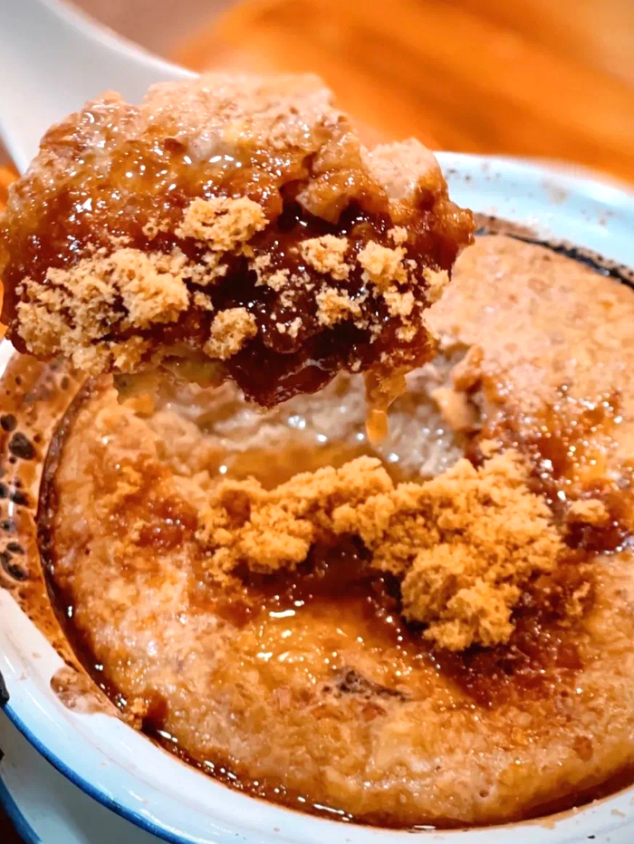 挖一块姜汁调蛋,红糖的甜蜜率先俘获了味蕾,浸满姜汁的蛋羹则带着鲜辣柔嫩紧随其后。姜的辛辣抑制了红糖的甜腻,从嘴巴一直暖到胃深处,酣畅淋漓!