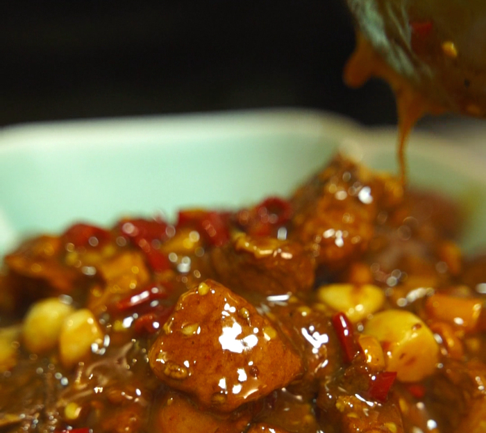 一口咬下,肉和骨头瞬间分离,伴随着浓郁的酱汁,独特的辣味从舌尖扩散到整个口腔,又辣又鲜,让人越啃越香。