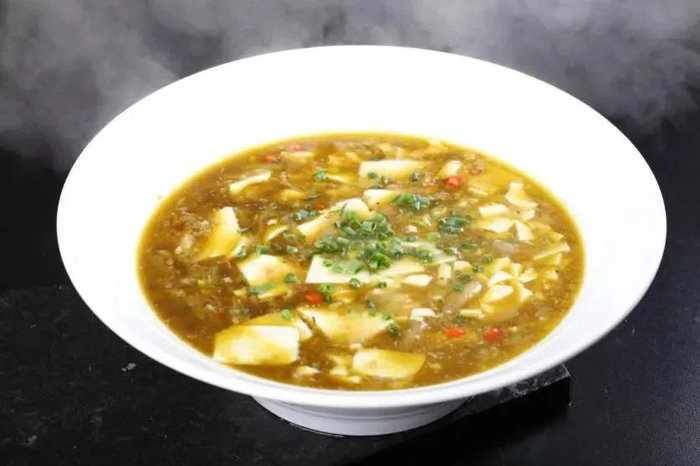 将烂菘菜、嫩豆腐、豆瓣酱、干红椒等食材放在一锅里,经过浓郁汤汁的炖煮,一道色重味美的佳肴便新鲜出炉,闻着臭、吃着香,独具风味。