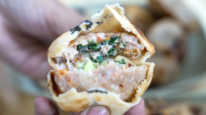 刚出炉的烤饼一口下去,鲜辣十足的肉汁渗透过薄薄的面饼,香而不腻、辣而不燥,让你立刻沉浸在酥脆鲜香的口感中。