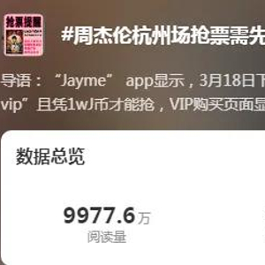 近日,“周杰伦杭州场抢票需先充值488元VIP”“消保委点名周杰伦演唱会抢票先充VIP”接连冲上热搜,引起广泛关注和热议。