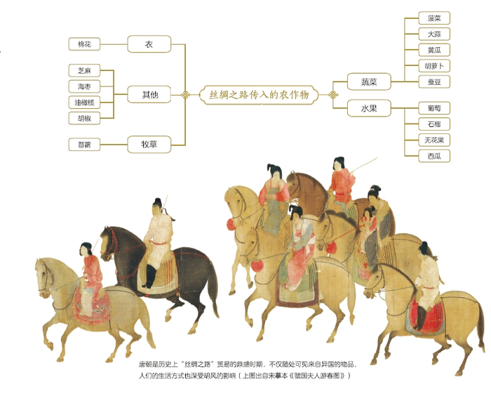 我们餐桌上的菠菜、黄瓜、胡萝卜、葡萄、石榴、西瓜,它们传入中国的途径虽不尽相同,但丝绸之路都起到了相当重要的作用。