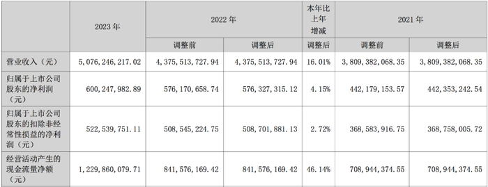2023年,公司实现营业收入50.76亿元,较去年同期增长16.01%;归属于上市公司股东的净利润6.00亿元,较去年同期增长4.15%。主要业务板块营情况如下: