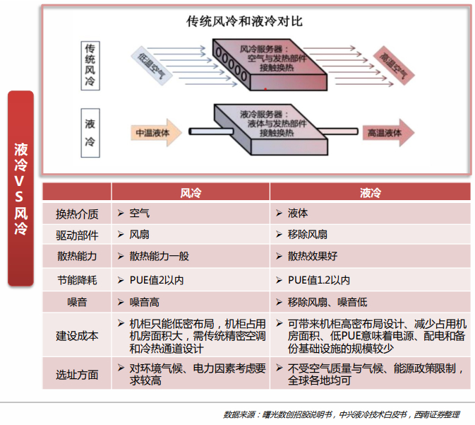 开源证券研报认为,双碳背景下,IDC绿色化是大势所趋,液冷或是散热技术演变的必经之路,随着PUE要求不断严格,液冷散热优势逐渐凸显,无论是IDC新建需求还是存量改造需求,液冷均有望成为首选。受益标的包括:液冷设备:英维克、科创新源、高澜股份、飞荣达;液冷服务器:中兴通讯、紫光股份;液冷IDC:宝信软件、润泽科技、网宿科技、光环新网、奥飞数据、科华数据等;散热温控:申菱环境、依米康、佳力图、同飞股份、银伦股份、强瑞技术、川润股份等。