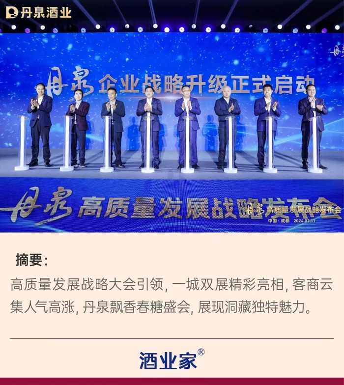 3月17日,丹泉高质量发展战略发布会在成都世外桃源酒店举行,为行业注入了新的活力和动力,这一战略的发布标志着丹泉品牌在追求卓越、引领行业发展方面迈出了坚实的步伐。