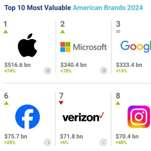 2024美国品牌价值100强榜单,苹果、微软、谷歌名列前三