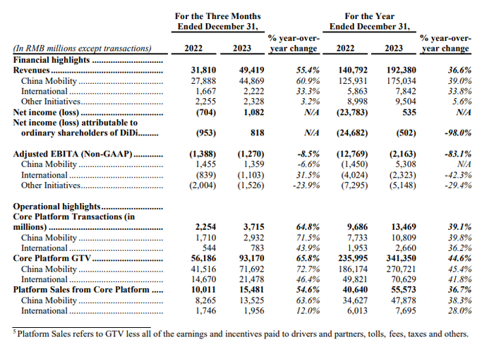 滴滴发布2023年财报:营收同比增长36.6%,首次实现年度盈利