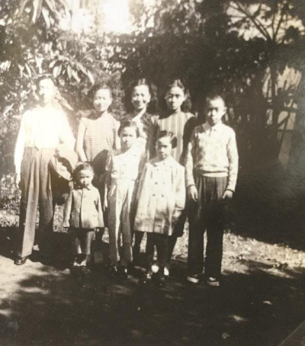 作者(前排左)与兄姐们合影于来斯别业三号花园