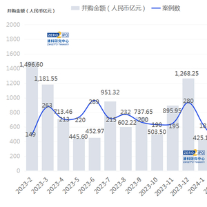 根据清科创业(01945.HK)旗下清科研究中心数据,2024年2月中国并购市场共完成103笔并购交易,数量环比下降44.3%,同比下降30.9%。其中披露金额的有73笔,交易总金额约为264.17亿人民币,环比下降37.9%,同比下降82.3%。