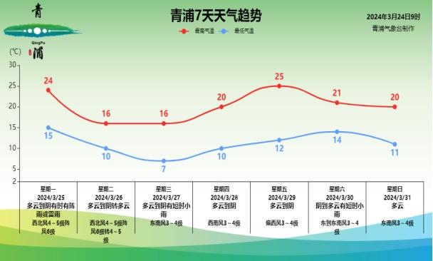昨天夜里青浦下雨又打雷,今天暖湿的戏份还在持续,白天多云到阴有分散性阵雨或雷雨,半夜到明天雨势还会有所加强,有外出计划的朋友请及时留意。气温也保持着上升的势头,白天最高温度21℃左右。上午转西南风3-4级,相对湿度95%-60%。