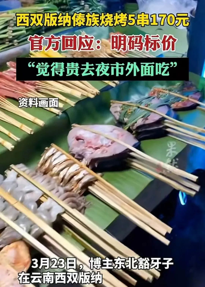 西双版纳5串烧烤170元?工作人员:明码标价,觉得贵去夜市外吃