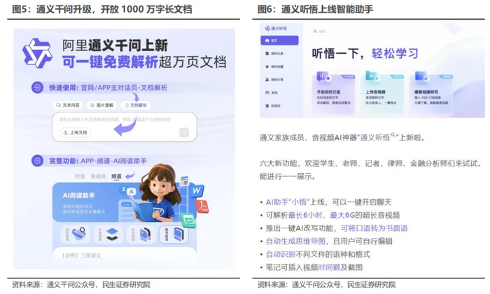 阿里同义千问&通义听悟重磅升级,免费开放1000万文字解析。3月19日,阿里大模型产品“通义听悟”发布多项新功能,上线音视频问答助手“小悟”、一键 AI 改写、思维导图生成等六大功能。而kimi因为长文本的出众优势而持续火热后,通义千问在3月22日消息宣布升级,向所有人免费开放1000万字的长文档处理功能,成为全球文档处理容量第一的AI应用。多家国内大模型厂商也同时宣布在长文本环节的版本升级或内测,国产大模型再度迎来竞争升级。