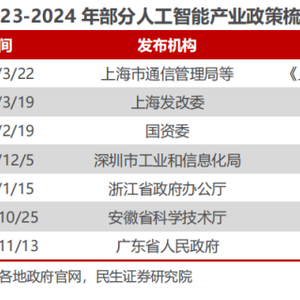 H20即将批量供应,国内算力迎来重要供给力量,而以Kimi大火出圈,标志着国产大模型进入新一轮快速迭代升级周期,算力需求有望延续高景气态势。建议关注:1)AI算力产业链:受益于人工智能加速发展,算力建设有望持续升级,建议关注浪潮信息、中国长城、紫光股份、工业富联、中科曙光、苏州科达、高新发展等国产AI服务器厂商以及寒武纪、海光信息等国产AI芯片标的等;2)AI应用:业绩韧性较强,下游客户IT支出能力相对较强,同时AI在应用端有望加速落地,建议关注金山办公、科大讯飞、同花顺、佳发教育、新致软件、金桥信息等。