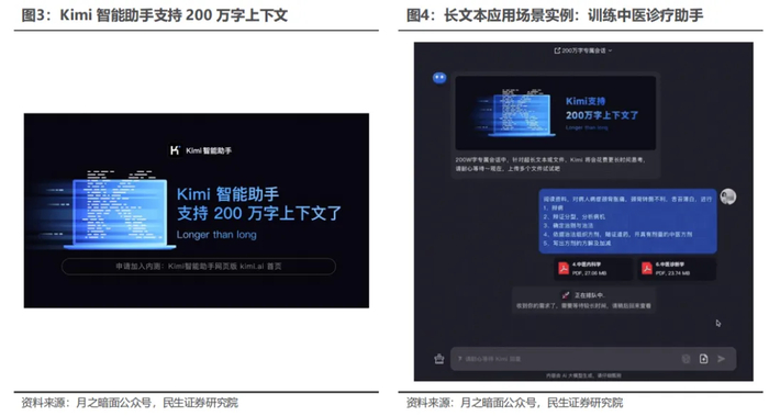 Kimi热度飙升,长文本成为大模型新的竞争力体现。近日,国产大模型新星Kimi成为“出圈”应用,得益于其优秀的长文本解析能力,在更加复杂的应用环境中kimi达成了良好的表现。而随着Kimi的爆火,多家国内大模型厂商也纷纷宣布自己在长文本能力的进度。大模型无损上下文长度数量级提升,有望使得AI应用落地更进一步,包括完整代码库的分析理解、可以自主帮人类完成多步骤复杂任务的智能体Agent、不会遗忘关键信息的终身助理、真正统一架构的多模态模型等等。