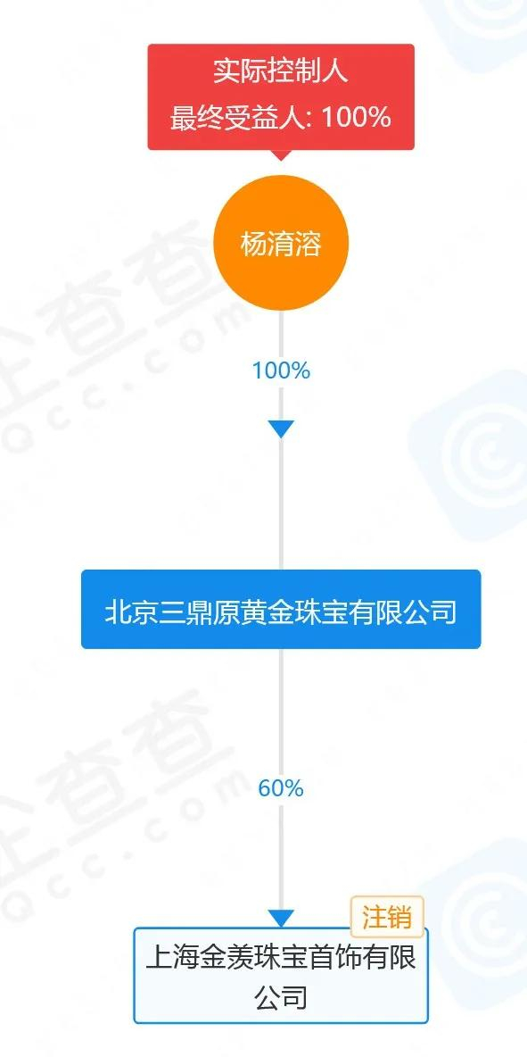 得知闭店后,曾女士在警方要求下查银行流水时才发现,原来中国黄金概念店的收款方是“北京三鼎原黄金珠宝有限公司”。据企查查,三鼎原的法定代表人是林建保,杨淯溶持有三鼎原100%股权。