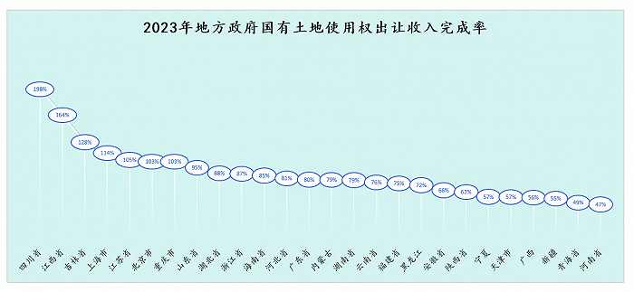 另外,从预算执行情况来看,2023年,绝大部分省份未能完成年初设定的卖地收入目标,只有北京、上海、江苏、江西、四川、重庆和吉林7个省份完成了年初的预设目标。
