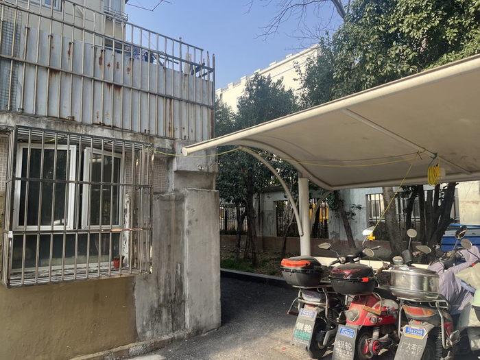 在诸多小区中,阳栖小区的“飞线”还有些特殊,电线从五六楼处下来后,先接进了一个看上去比较正规的充电箱,充电头则是从充电箱中接出来的。物业工作人员核实后告诉记者,充电箱系业主自行购买搭建。