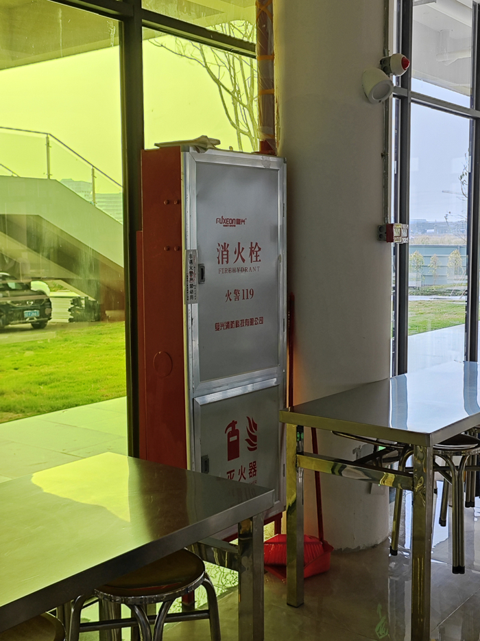 在位于南沙区东涌镇笃学路的“广州南华工贸技师学院”饭堂检查时,消防监督员就发现一组墙式消火栓被一张餐桌遮挡住,一旦周围发生火情,如此被阻挡会造成消火栓无法正常使用,带来严重安全隐患。