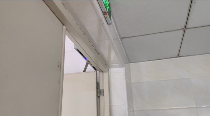 在从化区吕田镇“吕田卫生院”,消防监督员发现医院2楼的常闭式防火门的闭门器损坏,该门打开后无法自动关闭。