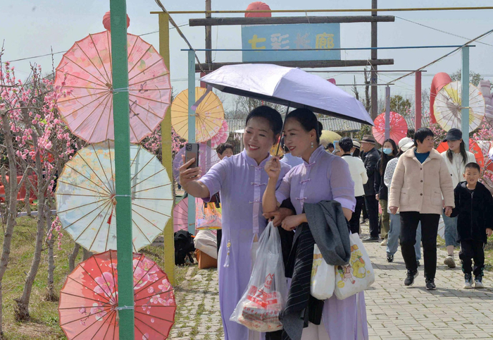 在自然风光的基础上,综合体开办了“桃花节”,增设了乡村大舞台、娱乐设施、农耕文化体验、农家饭、蔬菜采摘等项目,为不同年龄、不同爱好、不同需求的群众量身打造了集休闲、拍照、溜娃、研学功能为一体的好去处。如织游人与春日美景相映成趣,共同绘成一幅各美其美、美人之美、美美与共的田园春色图。