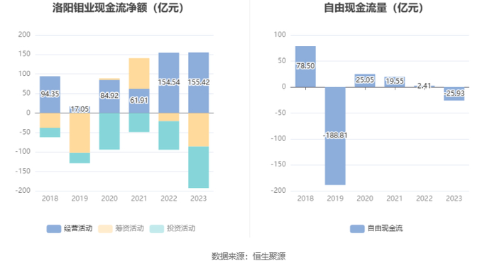 进一步统计发现,2023年公司自由现金流为-25.93亿元,上年同期为2.41亿元。