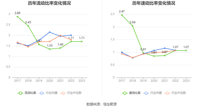 2023年,公司流动比率为1.71,速动比率为1.07。